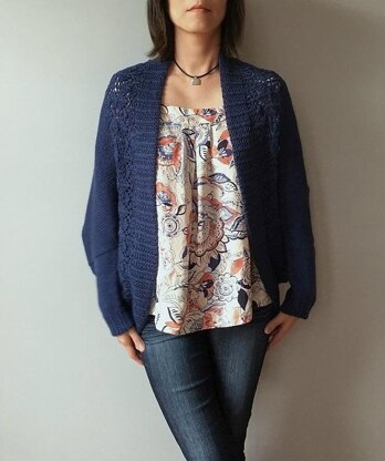 Perfect for home or venturing out, Madeline makes a versatile layering piece that is effortlessly chic and stylish. The eye-catching lace border dresses up the simple stockinette and keeps the oversized shrug interesting to knit and beautiful to wear. The entire cardigan is worked seamlessly, and is equally exquisite with or without the sleeves.