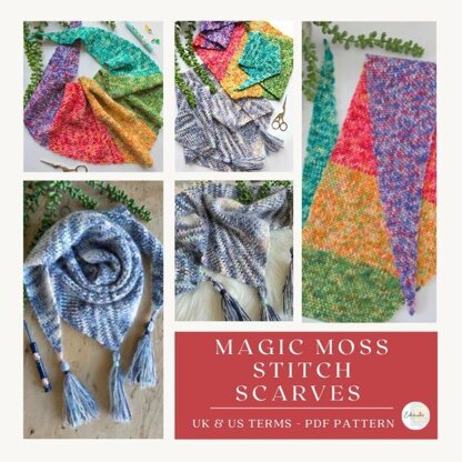 Downloadable Crochet Pattern - Magic Moss Stitch Scarf - Includes x2 different patterns!!