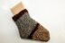 I made them from quality European sock yarn which is both soft and absorbent. You can use any 4 ply sock or baby wool you like.You need 2.5 mm metric or US 2 DPN needles and 50 g wool and a remnant for a contrasting cuff.