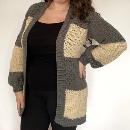 An easy, beginner friendly cardigan pattern in sizes XS to 5X. The stitch pattern is very quick, with minimal sewing too.