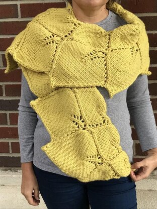 The pattern starts from I-cord and contains 3 pattern stitch charts. The first one begins with 3 small leaves. The second chart has one big leaf and one small and you can repeat this chart as many times as you want for the length of the scarf. The scarf ends with 3 leaves (the third chart). Though the scarf has pointy edge on the big leaf you don’t have to break the yarn. I came up with an idea of continuous process of knitting. You will need to know how to make slip stitches in crochet to do this. Since the stitch pattern has a lot of increases on the right side, the inner edge of the scarf is curvy. All stitch patterns are charted ( not written).