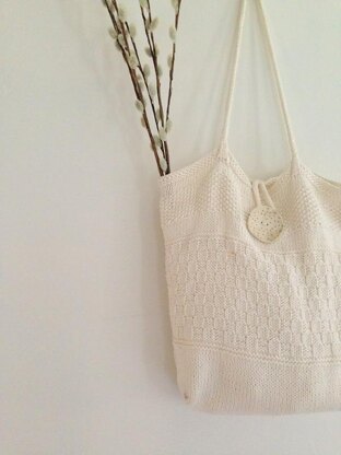 Ideal for beginners, the MAGNOLIA MARKET TOTE shows off your fancy new stitch combinations and makes a perfect portable spring knitting project. Great for groceries and great for the beach, too! Magnolia is worked in the round from the top down in soft, silky Butterfly cotton which is available everywhere and comes in millions of wonderful colors.