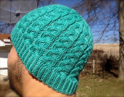 Braided cables work up into a quartered crown in this hat, creating a series of tidy decreases for a fun and fast knit.