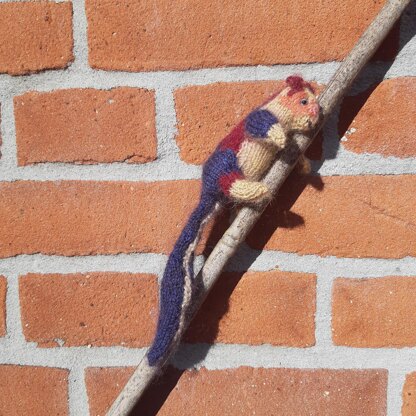 The colors, but also the texture of the yarn affect the look of the squirrel, so add a strand of mohair to the base to make it look furry and fluffy