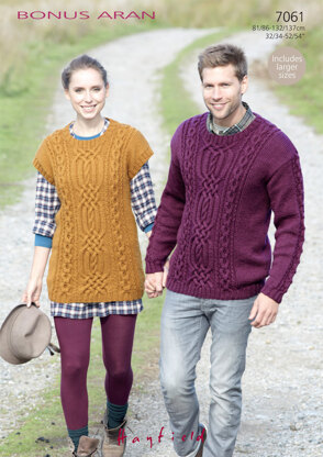 Man’s Sweater and Woman’s Tunic in Hayfield Bonus Aran with Wool - 7061 - Downloadable PDF is a Knitting pattern by Hayfield, available as a Downloadable PDF and includes instructions in English. Super fun to make, this pattern could be your next masterpiece!