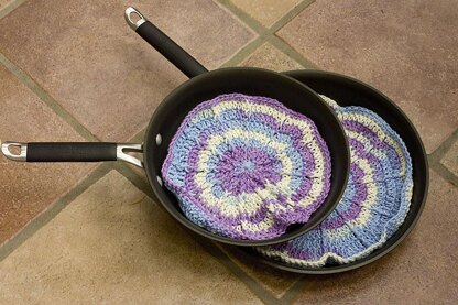 Pretty mandalas to crochet to protect your non-stick pans as you store them. These pan protectors are not difficult and work up quickly.