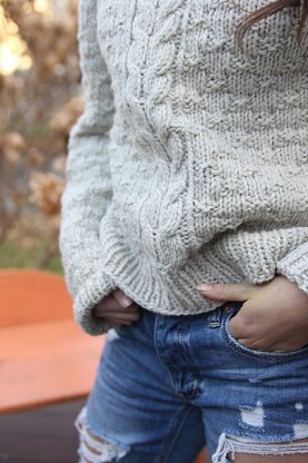Mango Smoothie was a request from my daughter, Maya. She wanted something big and slouchy and easy to wear. We loved this allover texture motif, accented by a few bold cables to create flattering lines. It looks great in a bulky yarn and it's a satisfyiing quick project. The pattern is a breeze to knit, easy to memorize and quick to work up. The cables make it possible to modify your shaping if desired. I suggest picking the finished size that gives you 5-6"/12.75-15.25cm of ease for slouchy fit. Or pick the size that will give you the silhouette you want.