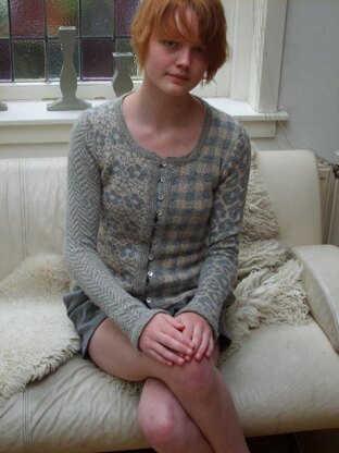 It’s knit in the round, bottom-up, with steeks for front, armholes, neck and sleeve caps. The fronts have picked-up stitches to create a sturdy double buttonband.