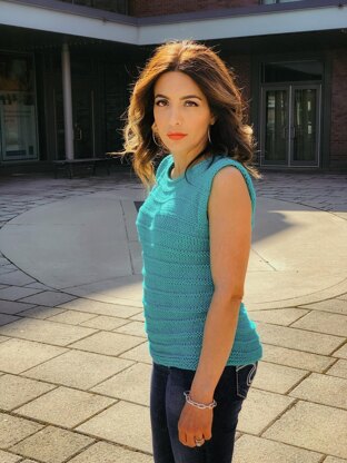This size-inclusive simple tee is composed of two rectangles (with the exception of the shaped front neckline), and has the most beautiful, cool-feeling fabric. The March Tee is made with KnitPicks Shine Worsted yarn, a 60% Pima Cotton, 40% Modal® (from natural beech wood fiber) blend.
