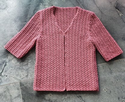 This ladies plus size cardigan features a flattering V neck and elbow length sleeves. It is intended to be a firm fit. The gorgeous lace stitch only has four rows so it easy to learn and to keep correct while shaping. It can be worn loose or fastened with a hook and eye.