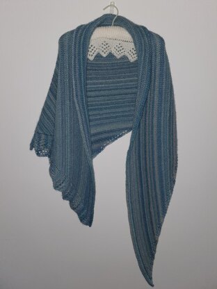 This is a generously proportioned double-sided garter stitch pattern for an asymmetrical shawl with a bonus pattern for a covered coat-hanger.