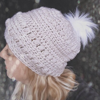 This hat is thick and cozy and full of beautiful texture. It adds just the right amount of slouch to make this hat super trendy and fun. Top it off with a soft and fluffy faux fur Pom Pom for added flair.