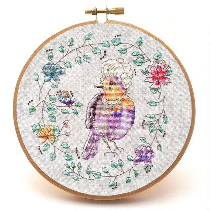 Have you ever had days where you felt like you were born in the wrong era? The Marie LaTweetonette cross stitch pattern can help you channel your inner Rococo queen vibe (just don't end up at the guillotine...). This cross stitch pattern features an elegantly accessorized robin with her stunning French powdered wig. Marie even has her infamous beauty mark. Based on an original watercolour and ink pen illustration, delicate backstitch and French knots add whimsy and detail to this pattern. This pattern also comes with optional printable speech bubbles (some sassy, some sweet, and some blank for your own phrases) so you can really make Marie LaTweetonette express your current mood. The pattern comes with a full black and white pattern and a full colour pattern. Model stitched over two on Zweigart 28ct Cashel linen (Antique White) and uses French knots.