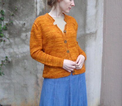 In a happy golden shade sure to brighten your day! This slightly fitted cardigan has small details - textured shoulders, mock ribbing details, a cute notched collar - for a wearable layer you'll appreciate this fall.