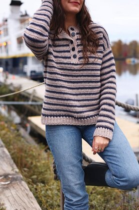 This henley-inspired pullover is a classic piece you’ll keep in your wardrobe for years to come. The slouchy fit, nautical stripes, and buttoned placket make for a cozy sweater that’s fit for the land or the sea.