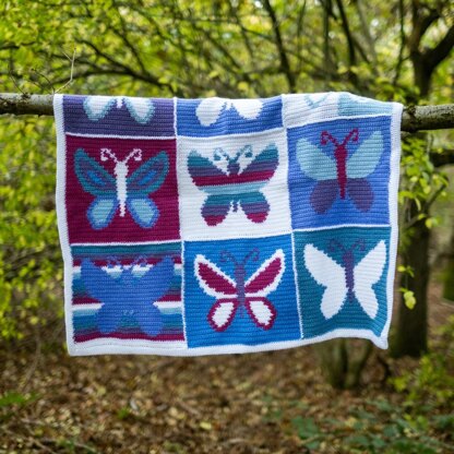 A fun blanket that allows you to vary how you want the motif to look. The 9 block size featured makes a snuggly baby blanket. Simply add more squares if you'd like a larger blanket :)