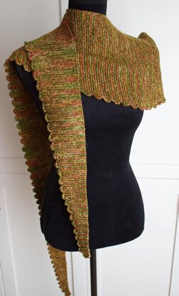 This scarf starts with a few stitches at one end, gradually increasing with a memorizable pattern repeat. At the half way point, the decreases begin and the scarf shrinks down to the original number of stitches.