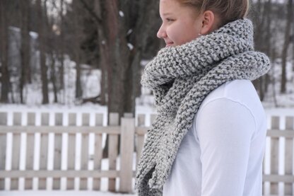The 108” length allows for wrapping and wearing in a variety of styles, and the repetitive row pattern makes it a quick and satisfying knit.