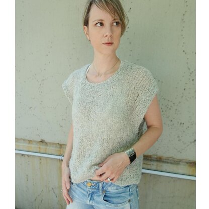 The Marni Tee is a t-shirt style, no-sleeve, drop-shoulder sweater-tank; a summer staple. The loose gauge and casual fit with subtle sequin details make this a comfortable yet stylish wear with a beautiful drape, embodying the “simple to make, easy to wear” motto. Knit in two pieces, this boxy-style top is seamed together using Three Needle Bind Off for the side and shoulder seams. A subtle splash of sparkle is added to the side Garter Stitch detail and neckband ribbing. This is a versatile piece to add to your wardrobe, wear it over a bandeau or tank in the spring/summer and layer it over short or long sleeves in the fall/winter months.