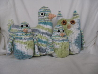These adorable birds are knitted in the round. With beaks and wings knitted separately and sewn on later. For this group of birds I have used one skein of Bernat Softee Baby Sport DK weight 310yards/283m per 120g/4.25oz – 1 ball in Prince Pebbles #31201. Finished toys size: Marnie and Max approximately 5" (15cm), Miranda approximately 8” (20cm) tall, Matilda approximately 9.5” (24 cm) long and 9” (23cm) height. Yarn usage: Marnie and Max: Approximately 46-50 yards of yarn, approximately 1.5 - 2 yards each of soft peach color medium weight yarn for the beak. Matilda: Approximately 137 -145 yards of yarn, approximately 2.5 yards of soft peach color medium weight yarn for the beak. Miranda: Approximately 73 - 80 yards of yarn, and 2 – 2.5 yards of soft peach color for beak. Also you will need safety eyes or buttons for the eyes and polyester fiberfill for stuffing.