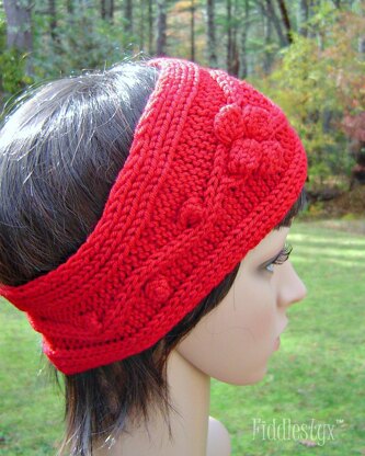 The twining cables and bobble “berries” that ring this cozy ear warmer headband were inspired by the rambling wild raspberry vines in the meadows and woods surrounding my home.