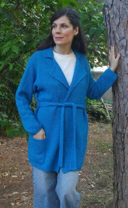 Martina Coatigan is an open-front, long-sleeve blazer sweater with lapel collar to mimic the silhouette of a blazer. It feels more polished than a cardigan but is as cosy as your favorite pullover. Staying comfortable while still looking professional strikes as an immediate win-win. It features large pockets at the hips and can be belted. The fronts, back and sleeves are worked flat from the bottom up and sewn together. The front openings, hems and lapel are worked in modified single ribbing. The lapel is shaped by replacing sts from patt as ribbing. The collar is picked up to finish. Slip all sts p-wise unless otherwise instructed.