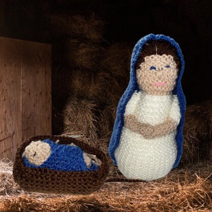 Knitting pattern for Mary with baby in manger.