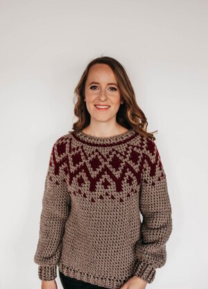 The colourwork in this sweater is written in chart form with instructions on how to read the chart. The remainder of the pattern is written in US English crochet terms. If you have made a solid colour, circular yoke sweater before you can make this! If you’ve done colourwork with floats before - you can make this! No colourwork experience needed. All patterns are written in US crochet terms.