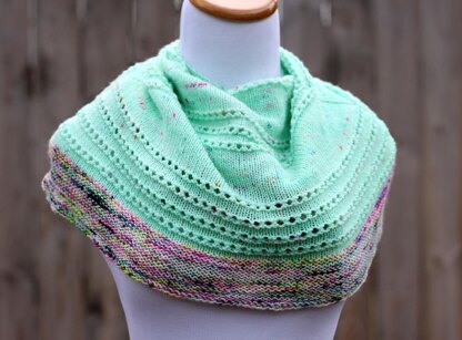 Mathilde is a crescent shawl knit from the neck-down and shaped with increases at fixed points. The body of the shawl is stockinette with rows of eyelets and the border is garter stitch. The simple textures show off hand-painted yarn to perfection. The pattern uses a percentage system so that you can track your yarn usage. The pattern was tech-edited by Laura Cameron.