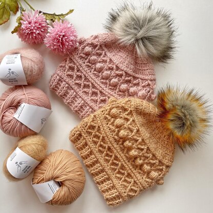 This beautiful and fluffy beanie is a great addition to your fall/winter accessories and will keep you warm during the cold season! It works up quick and the texture created by the different stitches gives you a unique look! The beanie is made with two different yarns, strands held together: 1 strand of Extra Fine Merino for warmness and 1 strand of Kid Silk for fluffiness.
