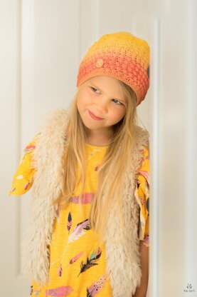 Light and textured kids beanie hat is suitable for boys and girls. The perfect on-the-go beanie that’s light but keeps covered from the sun. The Matilda beanie is a wonderful project with light yarn and flowing puff stitches to make a summer-ready beach hat for your loved little one.