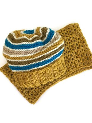 This is a knitted beanie pattern with a crocheted cowl to match . For details about the beanie see the listing for The Matilda May Beanie .