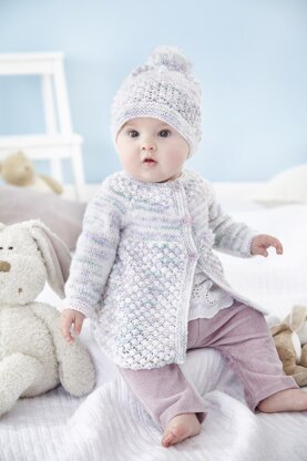 Matinee Coat, Angel Top, Jacket, Hat in King Cole Little Treasures DK - 5857 - Leaflet is a Intermediate Knitting pattern by King Cole, available as a Leaflet and includes instructions in English. Super fun to make, this pattern could be your next masterpiece!