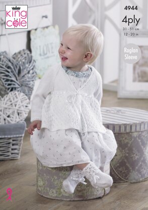 Matinee Coat Bonnet Bootees & Mittens in King Cole Baby 4Ply - 4944 - Downloadable PDF is a Advanced Knitting pattern by King Cole, available as a Downloadable PDF and includes instructions in English. Super fun to make, this pattern could be your next masterpiece!