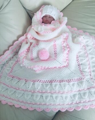 *MAY* named after the month I finished the design. Knitted in 4 easy triangles. All the stitch patterns are easy and clearly written. The crochet border is entirely optional and easy. I haven't added any details for it but it's easily found on youtube. A vert pretty blanket/shawl and would make a very nice gift for a new baby.
