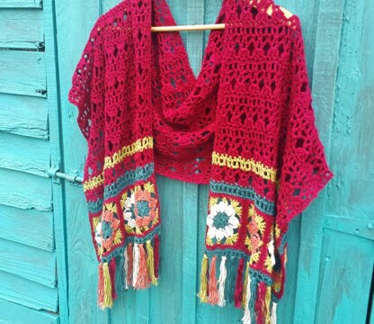 Elegant wrap made in beautiful linen blend yarn for drape and texture. Make one in your favourite colours for an eye catching addition to your wardrobe!