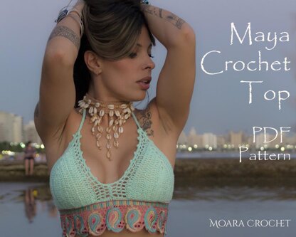 Inspired by Bollywood, this crochet bralette is a mix of crochet and ribbon of your choice. The crochet top curves around the chest beautifully, perfect for a summery beach day with some cute shorts of dress her up with a long boho skirt and your ready for a music festival. Ideal for an advanced beginner who is ready to step up their crochet skills. Some sewing skills required.
