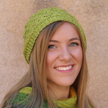 Maybel has a rich no cable pattern. This is a fun and fast knit, and is perfect for fall and winter. You can choose a beanie or a slouchy style. The pattern is written out and charted.
