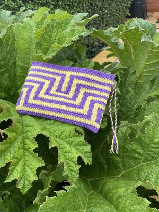 This can be used as a purse, a notions bag or a general knick-knacks bag! It is worked in one piece from the top down and uses one of the mosaic crochet techniques, worked with two rows per colour. Also described is how to join the zip as you crochet, and make a lining if preferred.