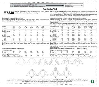 McCall's Misses' Tops M7839 - Sewing Pattern is a Beginner Sewing pattern by McCall's, available as a Paper Pattern and includes instructions in English, French, Spanish. Super fun to make, this pattern could be your next masterpiece!