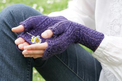 Construction: The mitts are worked in the round from the fingers to the wrist. The thumb is cast on first, then the hand is worked until the point where it is joined to the thumb. The thumb stitches are then gradually decreased.