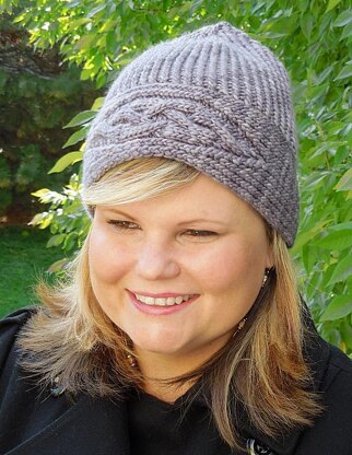 The beanie band is worked sideways over only a small number of stitches on a twisted rib base, just right for a little cable challenge with the end clearly in sight.