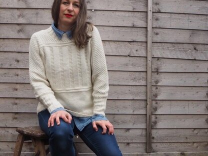 Melanie Jumper is a comfy, cosy, everyday jumper. This design is incredibly practical with its fitted cuffs, loose fit and relaxed rib at the neck. The design takes inspiration from traditional jumpers from the British Isles, utilising the beautiful stitch patterns in new and interesting ways. The body of the jumper is worked flat in one piece from front edge, over the shoulders and to the back edge. The cuffs and neck ribbing is picked up and worked in the round to finish.