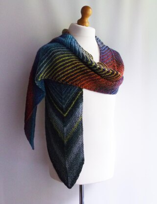 Use Cascade’s Melilla to knit this colourful scarf which has a centre decrease off to the side for interest. All garter stitch with simple decreases and increases to create shape.  (Size shown is standard length)
