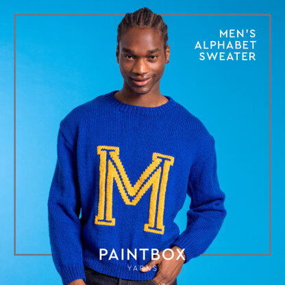 The best Christmas jumper ever! We love these gorgeous alphabet sweaters for all the family, knit flat and seamed in Paintbox Yarns Simply Aran. Knit the appropriate letter into the front panel using the intarsia method, or you can also stitch on afterwards using duplicate stitch/Swiss darning if you prefer. The whole alphabet is charted in the pattern. It's a great way to personalise a gorgeous gift! This pattern for men is sized from 42"" to 68"" chests, with plenty of ease.