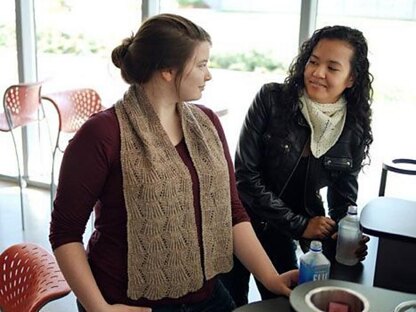 This light, soft scarf transitions across several seasons when beautiful days are cooler, but not cold enough for an outerwear layer. Wear long and loose indoors with a sweater or blouse and double it up when stepping outside into the wind—this piece features a reversible openwork pattern that makes styling a cinch. The back and forth movement of the motif creates a wavy effect that plays well with streaky natural shades or hand-dyed color ways. Simple stitchwork makes this a highly portable, easy to work project for lace newbies and one that experienced knitters will enjoy it as a fun option for travel or gift knitting.