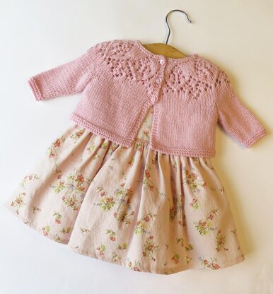 Knitting Pattern for a cute baby and toddler cardigan with lace on the yoke.