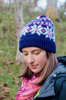 Meredith's Hat is a hat I created for my sister-in-law using the colours she likes and some traditional scandinavian star motifs.