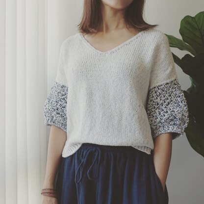 -It’s worked seamlessly from the top-down. -Pick up and knit for the sleeves.