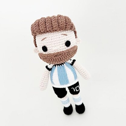 Messi measures approximately 26 cm when using the materials mentioned above. If you are using yarn with a different gauge the toy’s measurements will change. Feel free to use any yarn you want, the toy itself won’t change, just the size. Make sure you sew tightly every part of the toy.